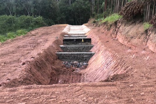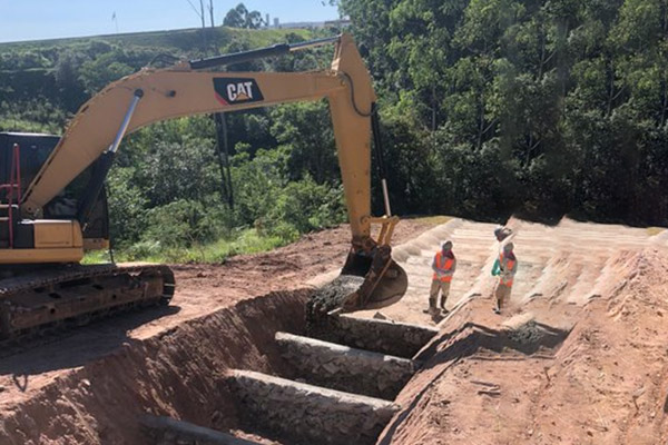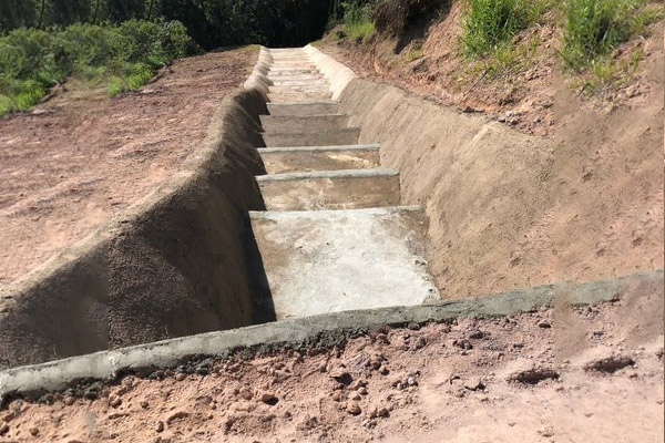 Execução de Escada Hidráulica em seção trapezoidal composto de pedra argamassada acabamento rústico , comprimento total de 70,00 m.